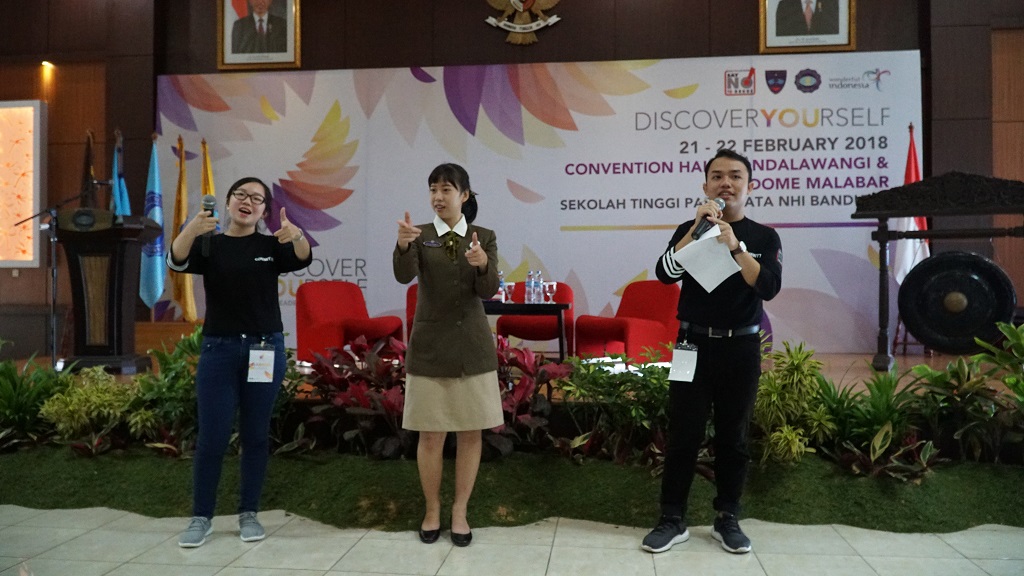 Held in the Convention Hall on the 2nd floor of Mandalawangi Building STP NHI Bandung, the activities on the first day, the presentation of leadership materials related to the development of self-potential and the presentation of the Student Senate by members of the Student Senate for the period of 2016-2018. The material presented by the lecturers of STP NHI Bandung : "Wonderful Leader for Wonderful Indonesia" by Dr. Anang Sutono, MM.Par., CHE., TalkShow Session "How to Discover Yourself from 3 Best Lecturers of STP NHI Bandung" by Ni Gusti Made Kerti Utami, BA., MM.Par., Siti Yulia Irani Nugraha, SE., MM.Par., and Edwin Ardiansyah, S.ST.Par., MM.Par., and also "Management and Organization" by Dr. Anwari Masatip., MM.Par. Through this activity, each participant is expected to develop their own potential so that it will create a leader who is aware of their self ability, which will form a diverse leader and has a high tolerance spirit.